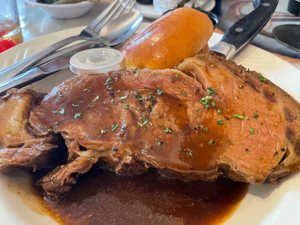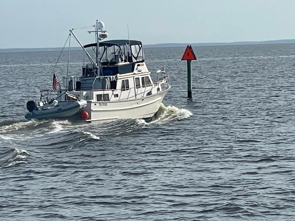 Dan, Bill, and Joel enjoyed the 16 oz prime rib at Coinjock’s Restaurant. Joan had mini crab cakes and a wedge salad. They gave us complimentary homemade potato chips with buttermilk ranch sauce — they were delicious. Dan also drank two Danhattans! After that, we tried to watch Game 7 of the Bruins vs. Toronto first-round playoffs, but I fell asleep even though some terrific hockey was being played (great goaltending). Thankfully, we came out victorious thanks to a nasty goal by #88! Good thing, because I brought my Bruins banner to fly off the boat.