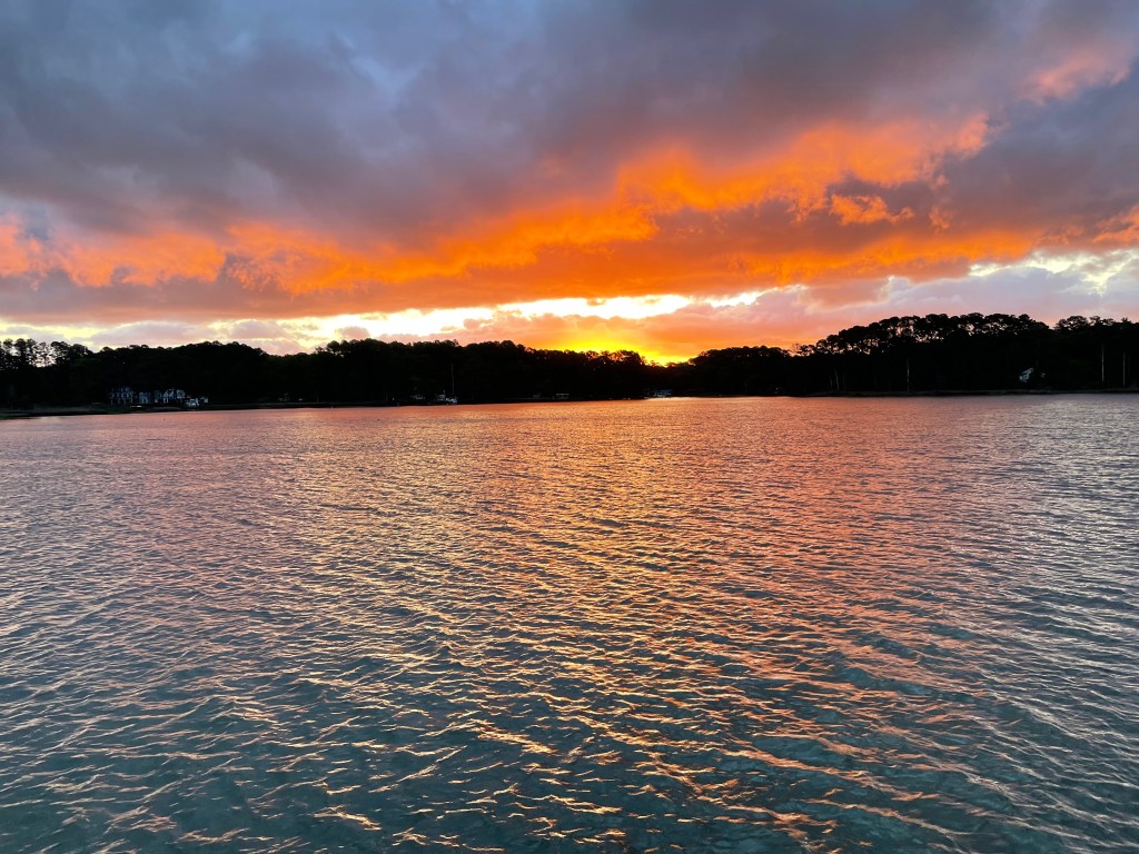 356 nights to go – We anchored here overnight, and while there was some weather, including thunder and lightning, the bay was relatively calm. Dan took Liam to shore before 9 a.m. and then started doing chores.